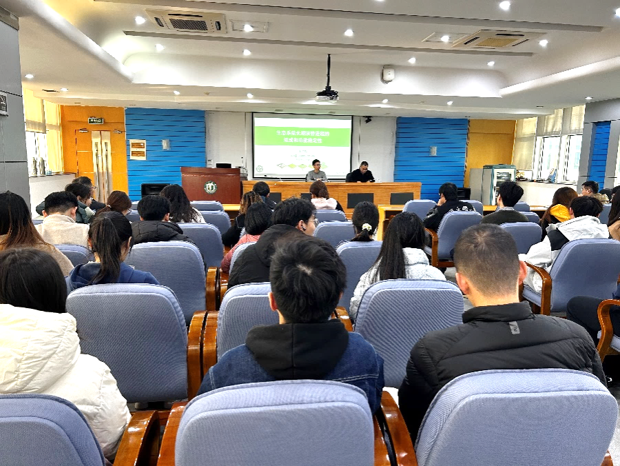 经典演替理论认为,随着演替的深入,群落的物种组成、结构和功能都将趋于相对稳定。但是由于长期演替序列和控制性实验的缺乏,针对这一理论的直接验证依旧十分困难。黎绍鹏教授团队通过长期连续监测和控制性弃耕地实验相结合,发现群落物种组成和功能稳定性随演替的变化规律具有典型的空间尺度依赖特征,而外来生物入侵会显著地降低本地物种多样性并抑制生态系统恢复进程;这些研究结果对于发展和完善演替理论和指导弃耕地的生态恢复具有重要的参考价值。报告引起现场师生的浓厚兴趣,黎绍鹏教授针对报告内容和当前国际生态环境问题与在场师生进行了热烈讨论。