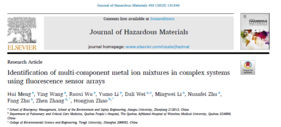 环境污染与健康团队的最新研究论文“Identification and selective monitoring of multi-component metal ion mixtures in complex systems using fluorescence array sensors” 在环境科学与工程领域顶级期刊Journal of Hazardous Materials (IF:13.6)上在线发表。正妹av