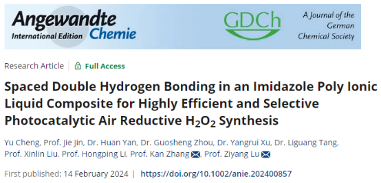 的最新研究论文“Spaced Double Hydrogen Bonding in an Imidazole Poly Ionic Liquid Composite for Highly Efficient and Selective Photocatalytic Air Reductive H2O2 Synthesis”在Angewandte Chemie-International Edition (IF:16.6)上在线发表。正妹av