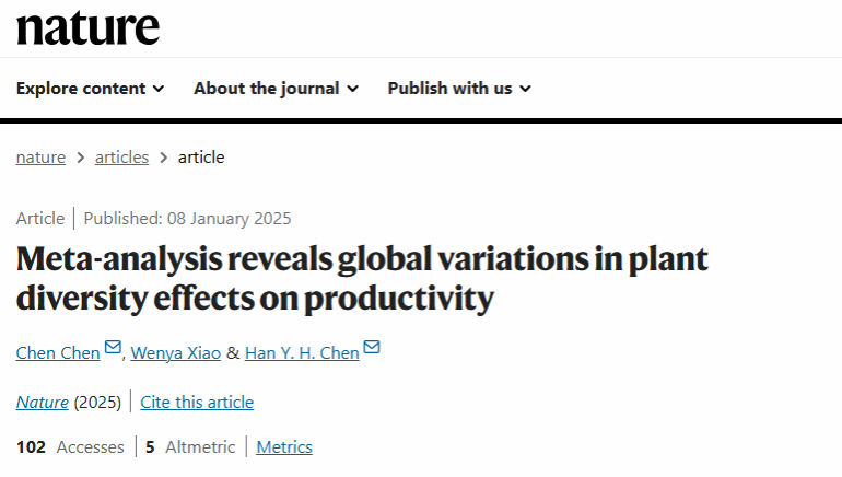 近日,国际顶级学术期刊《自然》(Nature)发表了题为“Meta-analysis reveals global variations in plant diversity effects on productivity”的研究论文。该论文由加拿大湖首大学(Lakehead University)、正妹av