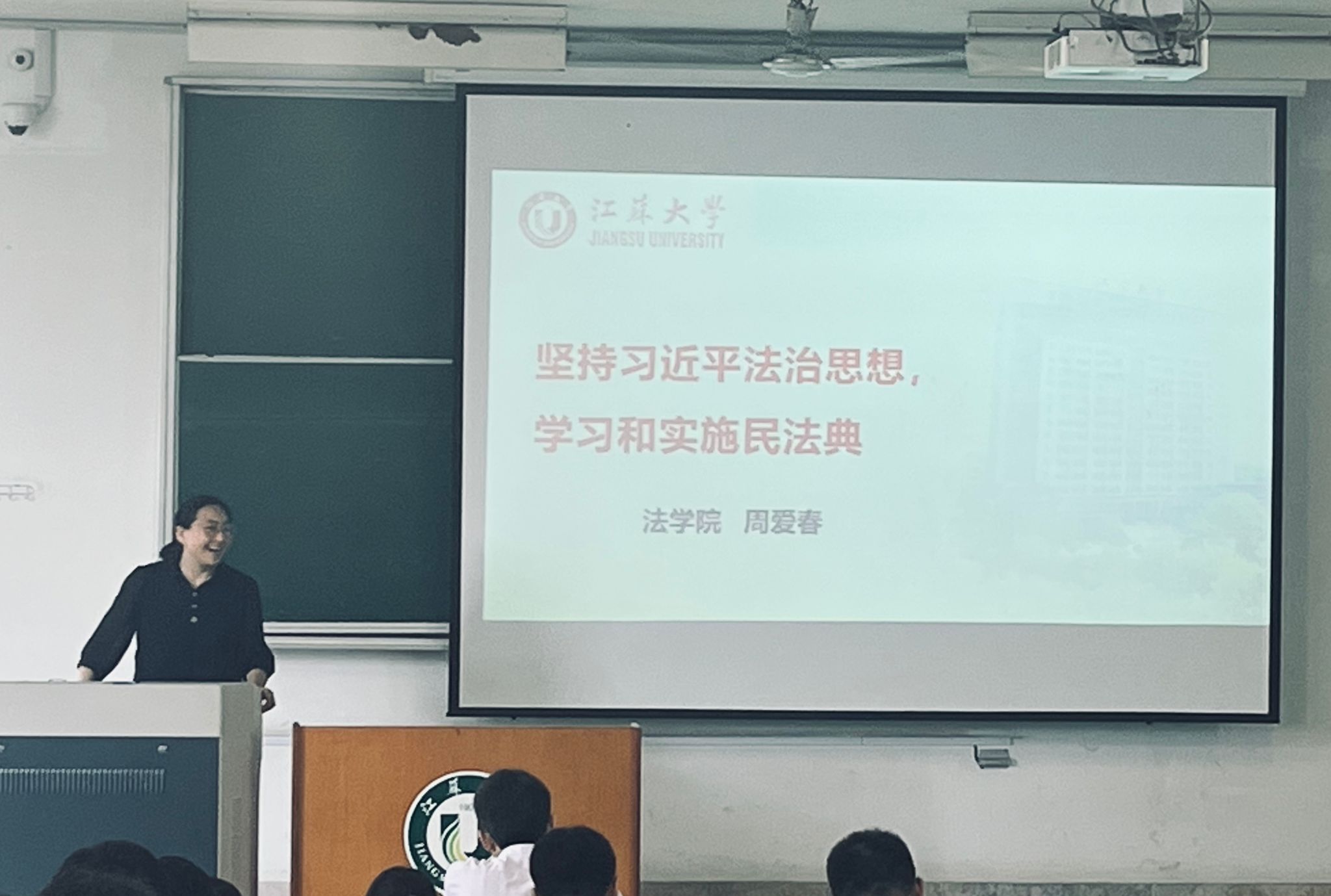 首先,周爱春系统阐述了习近平法治思想的核心要义和思想精髓,为我们进一步学习好、贯彻好习近平法治思想提供理论指导。接着,周爱春指出,编纂实施民法典是习近平法治思想的生动实践,她通过大量案例对民法典中与师生工作学习生活相关的法律规定和一些社会热点问题进行了详细讲解,切实增强师生尊法守法意识,提高运用法治思维和法治方式解决问题的能力。
