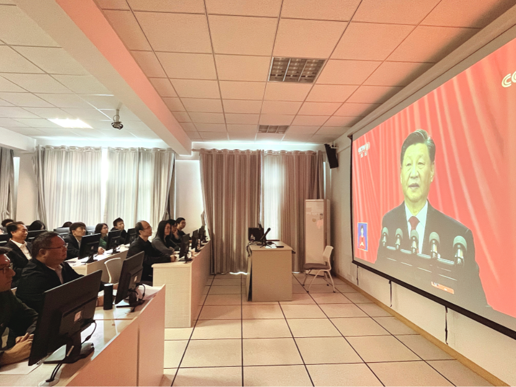 党委组织党委中心组成员、学院办公室和实验室的全体人员以及研究生和本科生代表在主A楼501集中收看党的二十大开幕会,认真聆听习近平同志代表中国共产党第十九届中央委员会向大会所作的报告。学院其他师生在办公室、工作室或在家在宿舍自行收看开幕会盛况。开幕会结束后,各支部推荐上报了支部党员的简短收看感言,学院党委汇总后迅疾上报给校党委宣传部。
