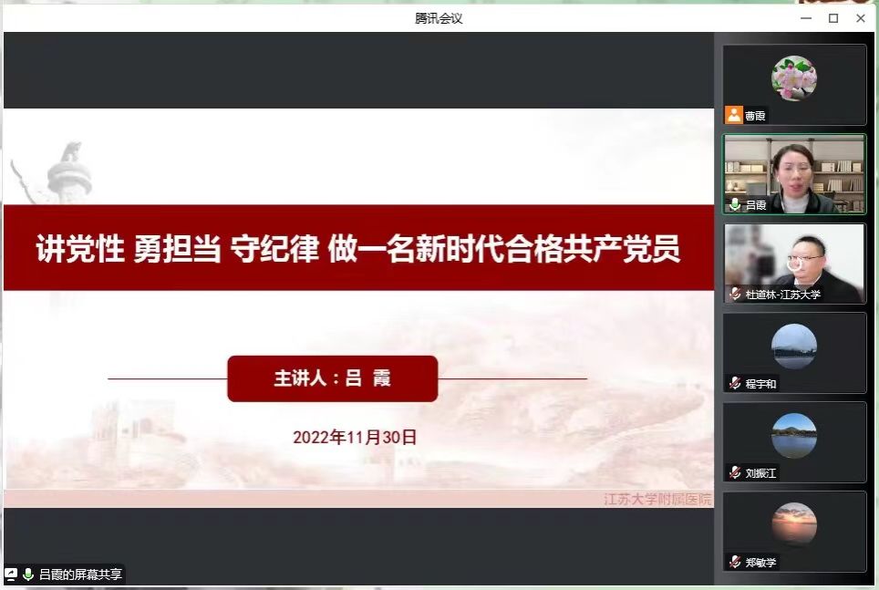 纪委委员、附属医院党委副书记、纪委书记吕霞同志,给学院全体教职工和学生党员,线上作党风廉政教育专题讲座。本次讲座由学院党委副书记、院长杜道林主持。