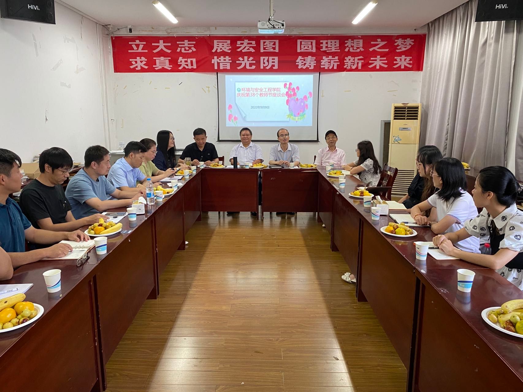 庆祝教师节座谈会在主楼2311会议室召开,领导班子全体成员、关工委老同志、近一年来新入职教师、老教师代表、党外人士代等参加。会议由学院党委书记黄勇强主持。